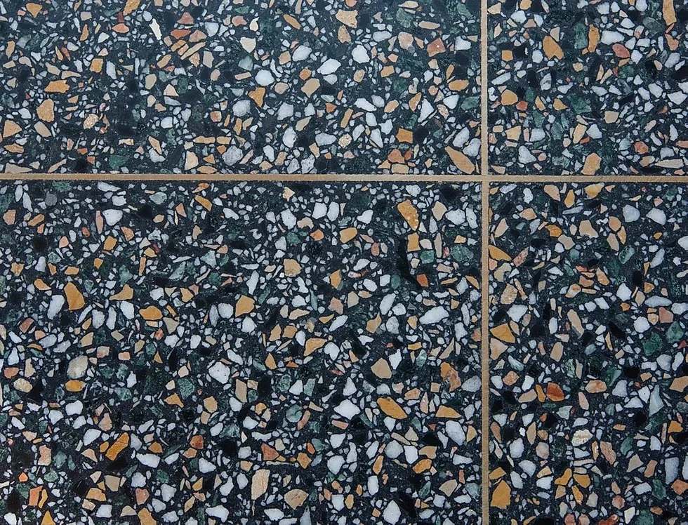 Våre terrazzosystemer kan leveres med stein, skjell, glassbiter eller en kombinasjon av disse og vi tilpasser mengden og størrelsen på tilslagene etter kundens ønsker og behov.